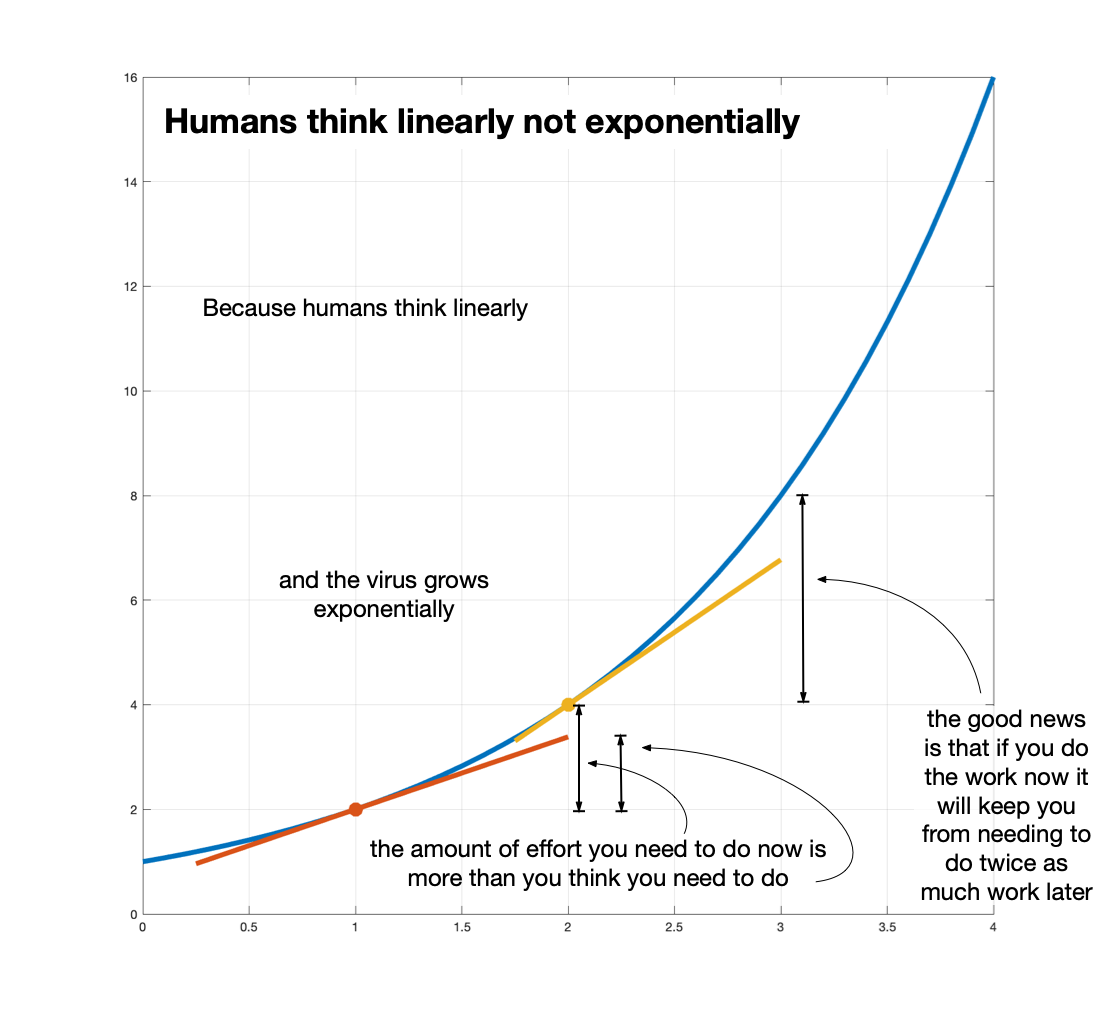 If you want to avoid either state security lock down or deaths on the order of 10% of your population then act now. Act more forcefully than you think you need to. And enlist as many others as you can. When you are trying to get others to act, please do so with love and not shame.